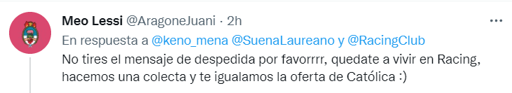 Cientos de mensajes le dejaron los hinchas de Racing a Mena.