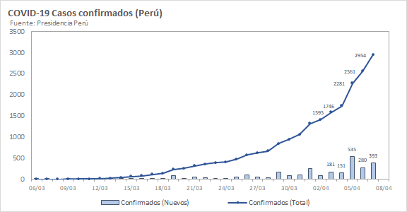 En Perú la situación no está tan grave. Hasta el lunes, fueron más de 20400 muestrados. De ellos, eran 2561 positivos y los fallecidos llegaron a 92.