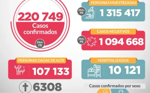 En el nuevo informe señalan que de las 1’315,417 pruebas,220,749 casos resultaron positivos. Las muertes llegaron 6,308, es decir 199 más que en las últimas 24 horas.