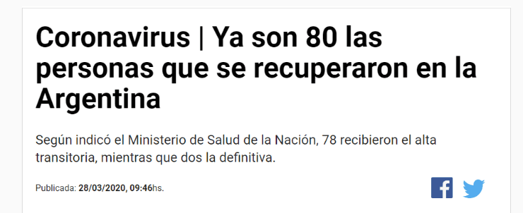 690 personas se han contagiado en Argentina dejando un saldo de 18 víctimas hasta el 28 de marzo de 2020 a las 13 horas.