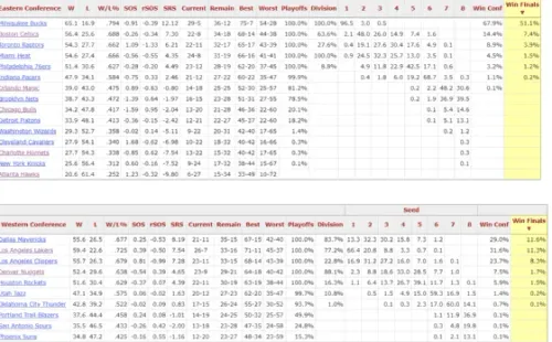 En este sentido, el portal estadístico Basketball-Reference realizó proyecciones de los equipos con más probabilidades de ser campeones de la NBA, teniendo en cuenta plantilla, calendario y, por supuesto, los números que han dejado hasta ahora:
