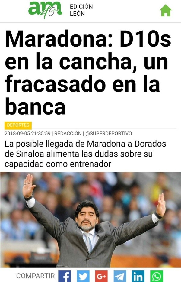 Además, hasta elPeriódico AMfue tajante y tituló: “Maradona: D10sen la cancha, un fracasado en la banca“.