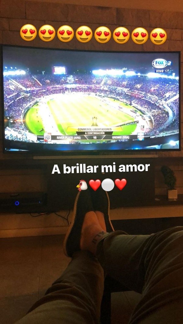 En sus historias de Instagram, el arquero subió una foto viendo el partido por televisión.