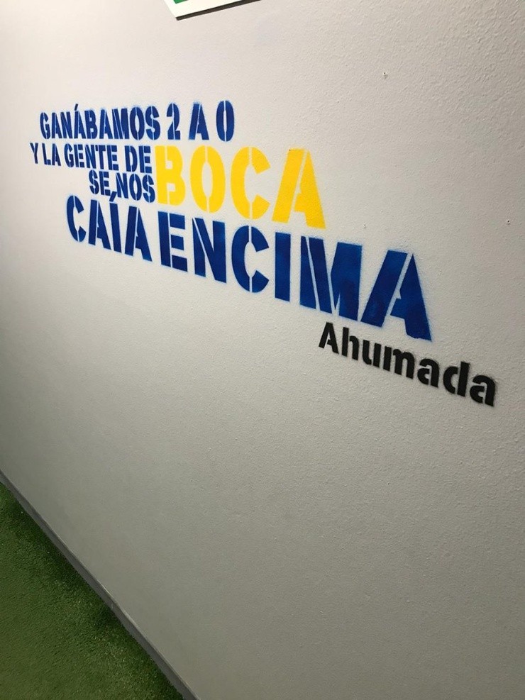 Sin embargo, la motivación también está dentro del túnel para los futbolistas. Desde hace años, en el pasillo que conduce a la cancha se leen frases de leyendas xeneizes y hasta del sentimiento del club.