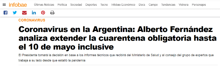 De no mediar ningún caso extraordinario, Alberto Fernández daría una conferencia de prensa antes del fin de semana para justamente comunicar la extensión de la cuarentena y, principalmente, por qué la razón de ello. Su objetivo no es hacer ningún paso en falso que pueda acelerar la curva de contagios, que hoy ya se ha aplanado aunque día a día tenemos más contagiados y, lamentablemente, más fallecidos.