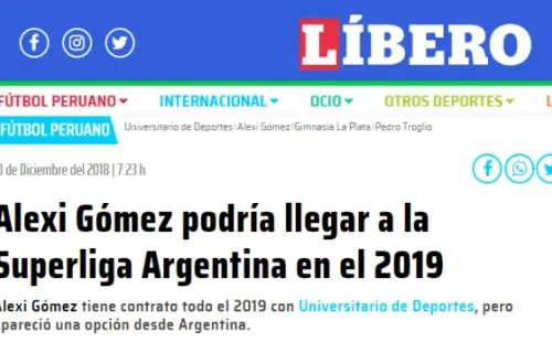 Según detalló Líbero, Alexi estaría en la mira de Pedro Troglio, quien actualmente es entrenador de Gimnasia de La Plata de Argentina.