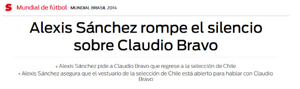 “Es importante que que Claudio esté como capitán.Tenemos que hablar con él. Nadie está enojado. Tenemos que decirle las cosas a la cara. Claudio tiene las puertas abiertas para hablar con todo el grupo, se lo dije. Ha logrado muchos triunfos para Chile. Lo que dicen afuera, es un tema que vamos a solucionar entre nosotros. De lo que habló, tiene que venir y hablarlo él. Es el más indicado”, aseguró.