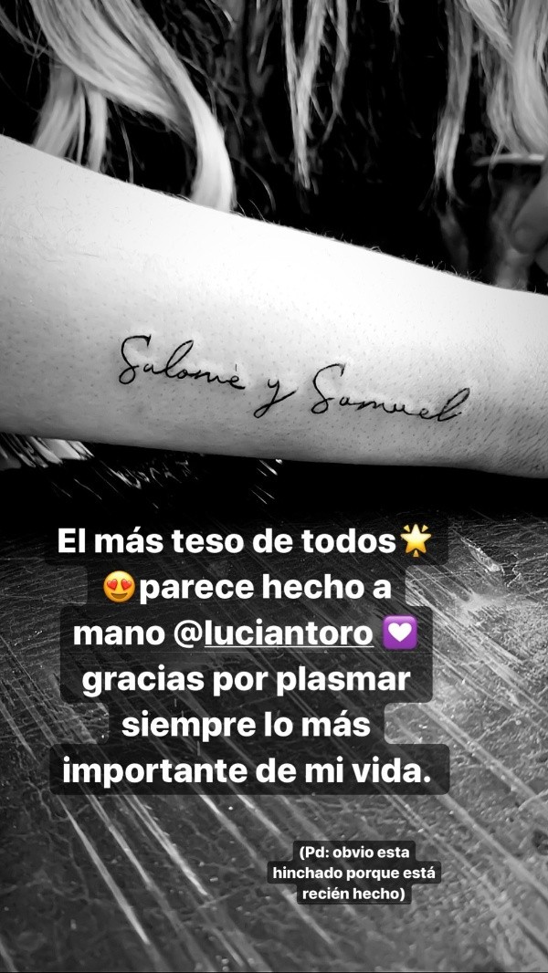 Pero, este miércoles, Juana Valentina derritió de amor a todos sus seguidores por el nuevo tatuaje que se hizo, el cual es el honor a sus sobrinos Samuel y Salomé.