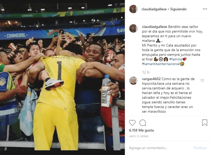 Llena de orgullo por la actuación de su esposo, Claudia Gallese publicó una historia adjuntando una imagen del portero.
