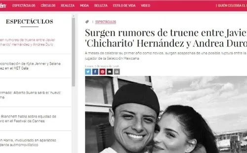 De ser cierto, no serían buenos días para Chicharito Hernández. Varios medios mexicanos estarían reportando que la actriz española Andrea Duro habría terminado su relación sentimental con el delantero del West Ham, quien justo por estas fechas está meditando su futuro deportivo.