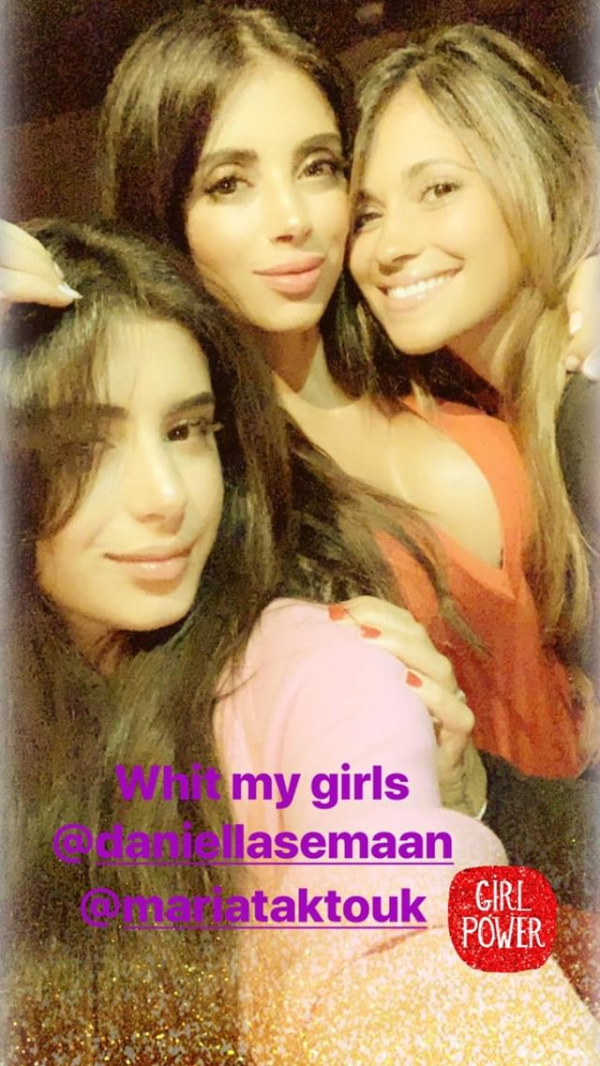 En Emiratos Árabes, se junto con dos amigas: Daniella Semaan, esposa de Cesc Fábregas, y MariaTaktouk.