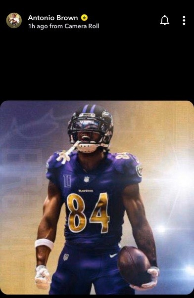 Todo esto se da porque Brown inició, oficialmente, el coqueteo con la franquicia de Maryland al publicar una interesante imagen en su cuentaoficialy personal de Snapchat, con el uniforme de losRavens. Y no, no se trata de una imagen antigua, ya que Antonio nunca jugóen Baltimore.