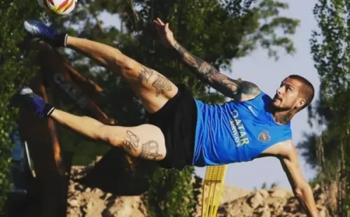En este caso, aprovecharon una foto de DaríoBenedettohaciendo una curiosa pirueta en el aire durante la pretemporada.