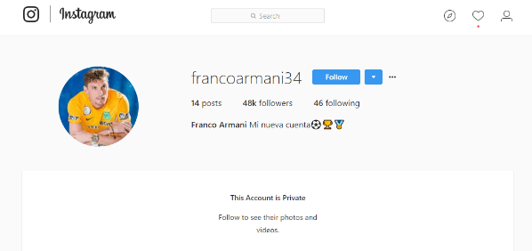 El todavía portero del Verde cambió a privado su Instagram. Ahora sólo podrán ver lo que ponen aquellos que el arquero permita.