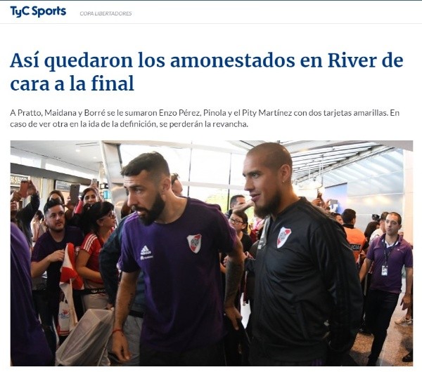 Seis, precisamente, son los futbolistas de River que llegaron a la Arena do Gremio con dos tarjetas amarillas, por lo que de recibir una más en el partido de ida de la final, se quedarían sin revancha.