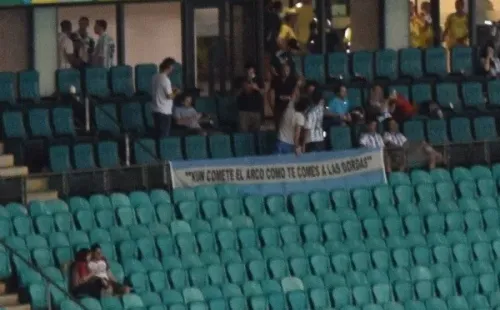 En una de las gradas, un trapo con los colores Albicelestes apareció con un fuerte mensaje para Sergio Agüero.