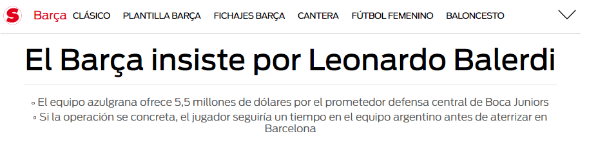 Como ya se comentó hace unos días, Barcelona realizó una oferta de 5,5 millones de dólares por Lucas Balerdi, jugador de Boca.