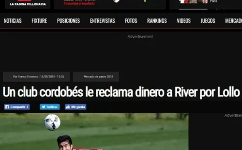 Según la Ley Nacional 27.211, el club formador de un futbolista puede reclamar el 0,5 por ciento por año entre los 9 y los 18 años. Cabe destacar que Lolloarribó a River, en 2016, a cambio de 3,5 millones de dólares.
