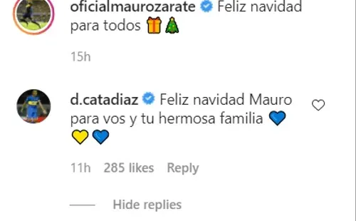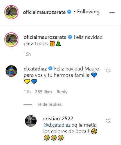 En los comentarios apareció el ‘Cata’, llenando de buenos deseos al delantero de Boca y a sus seres queridos, y poniendo también unos corazones azules y amarillos.
