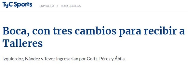 En consecuencia, de confirmarse lo anteriormente dicho, el Xeneizeformará el domingo con Esteban Andrada; Leonardo Jara; Izquierdoz, Lisandro Magallán, Emmanuel Mas; Nández, Wilmar Barrios; Cristian Pavón, Mauro Zárate, Edwin Cardona; Tévez.