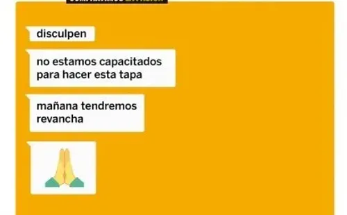¿Qué hicieron? Pusieron una tapa naranja donde se podía leer, como si fuese un mensaje de WhatsApp “disculpen, no estamos capacitados para hacer esta tapa, mañana tendremos revancha”.