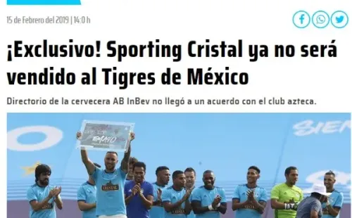 Las negociaciones entre Tigres de México y la cervecería AB InBev no llegaron a un destino correcto. Al parecer la cifra económica no es favorable para el conjunto peruano y por ello decidieron descartarla.