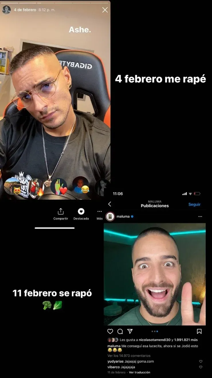 Más tarde, adjuntando una nueva historia y algunas imágenes más en donde comparó sus looks con los de Maluma, Coscu escribió: “Bebetos no estoy diciendo que estoy parecido ni nada, pero literal siempre aparece con el mismo corte que tengo yo de la nada”.