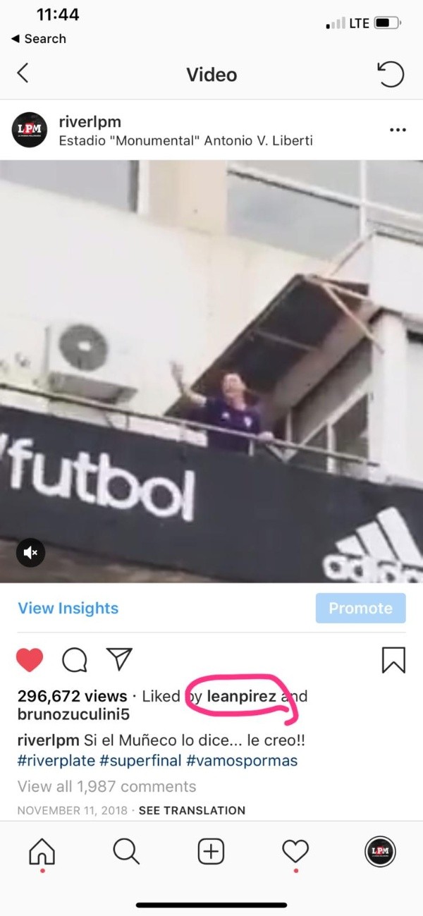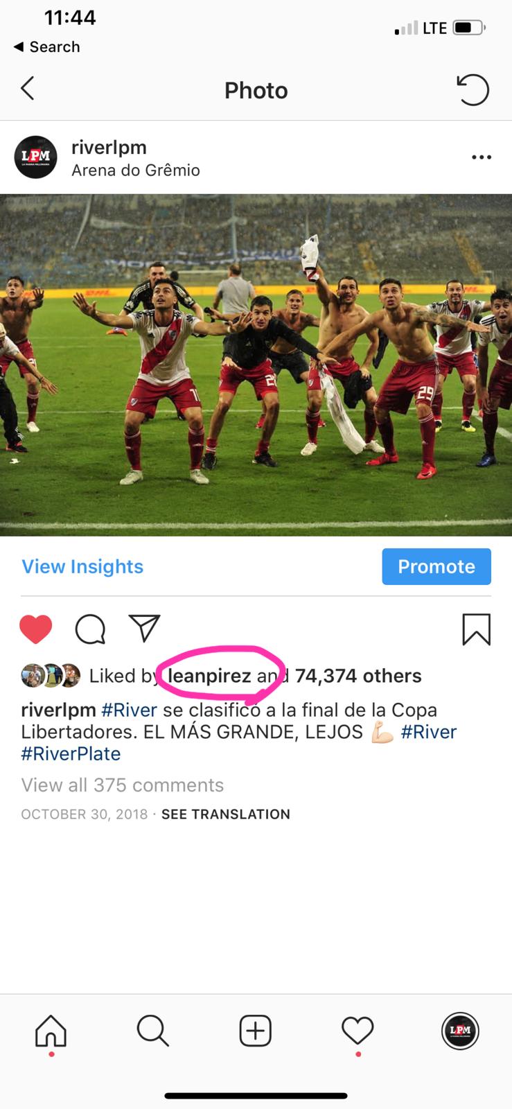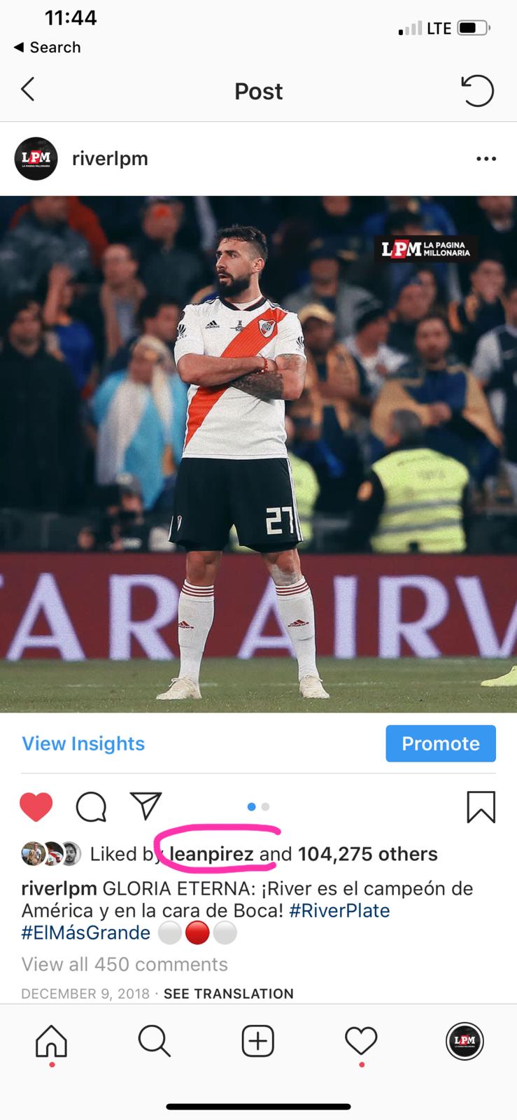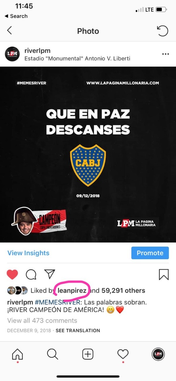 Después de que el Millonario le ganela final de la Libertadores a Boca en el Bernabéu, el jugador le dio “me gusta” a varias fotos, muchas de ellas cargando al eterno rival.