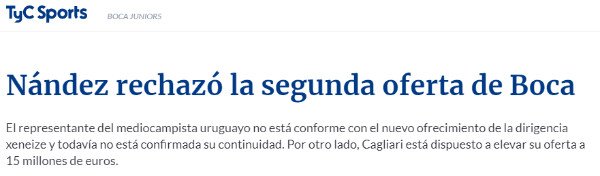 Para empeorar aún más las cosas, el Cagliari, luego que le rechacen una primera oferta acercada para quedarse con el jugador, renovó la apuesta e hizo una nueva con un número un poco más acorde a la situación.