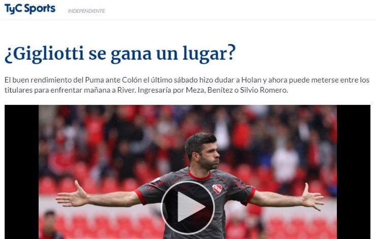 Es que, por la fecha 5,Gigliotti marcó dos tantos en la victoria por la Superliga Argentina ante Colón de Santa Fe.