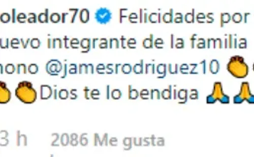 Uno de esos fue Carlos Bacca. El delantero del Villarreal y compañero de la selección colombiana le comentó: “Felicidades por el nuevo integrante de la familia,mono. Dioste lo bendiga”.