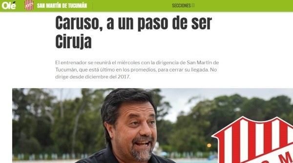 Se trata, por supuesto, de Ricardo Caruso Lombardi. Durante las últimas horas hubo charlas formales entre la dirigencia de San Martín de Tucumán y el entrenador y solamente restan detalles para que se confirme.