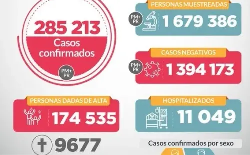 En el nuevo informe, señalaron que de las 1’679,386 personas muestreadas, 285,213 casos resultaron positivos. Las muertes registradas ya son 9,677, es decir 173 más en las últimas 24 horas.