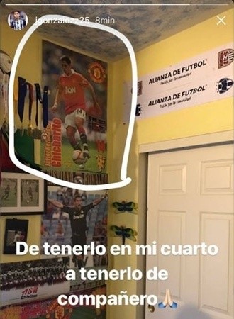 Chicharito Hernández es su ídolo de toda la vida, y González afirmó que aún no cree que pasara de “tenerlo en su muro” a “tenerlo de compañero”, junto con emojis de manos juntas, lo que hace parecer que le agradece a Dios por este sueño.