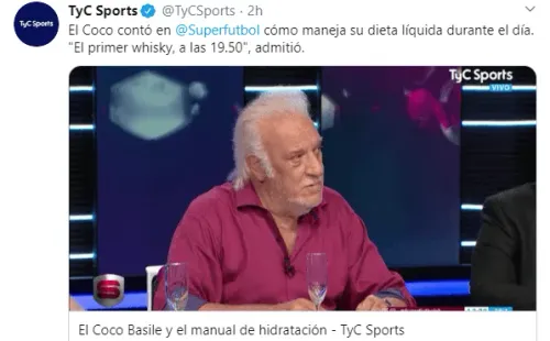 Coco Basile participó como invitado especial del programa Superfútbol, de TyC Sports, donde hizo una revelación en relación a uno de los placeres que no negocia.