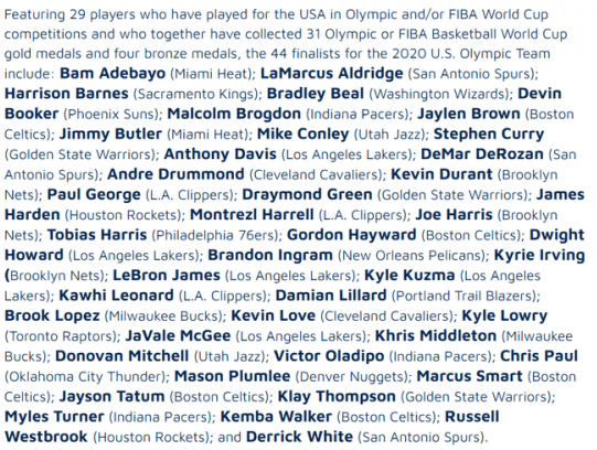 Con LeBron James encabezando la nómina, y el acompañamiento de otros nombres fuertes como los de Stephen Curry, James Harden, Anthony Davis, estos son los 44 preseleccionados: