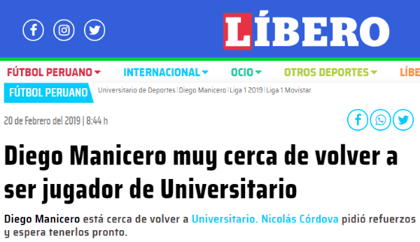 Según señaló Líbero, Carlos de Pena habría aparecido como una nueva alternativa de Universitario para reforzar el primer equipo.