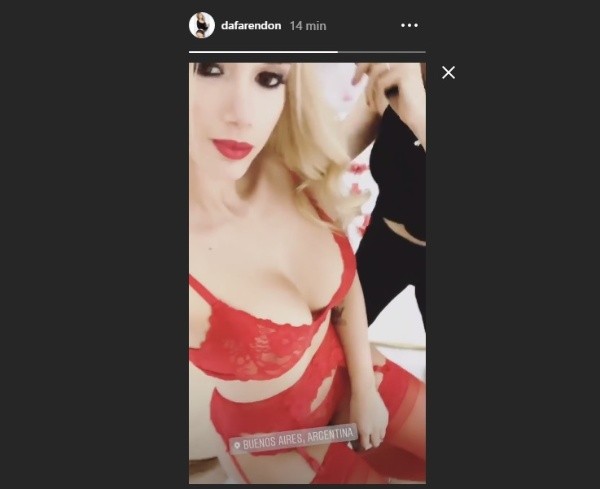 En la misma se puede ver a la pareja del exfutbolista de Atlético Nacional de Medellín luciendo un corpiño rojo y medias de red del mismo color, algo que no hizo otra cosa que levantar la temperatura.