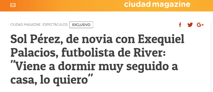 Si bien se especuló en un principio con que el afortunado era el mediocampista Bruno Zuculini, Sol reveló hoy, sin decir su nombre, la identidad de su nueva pareja.