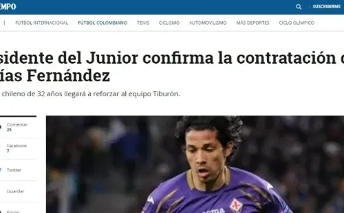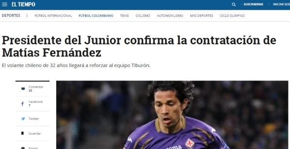 “El jugador Matías Fernández estará con nosotros por un año. Vendrá el día miércoles y de inmediato se realizarán sus pruebas médicas”, exteriorizó al respecto Antonio Chart, presidente de Junior.