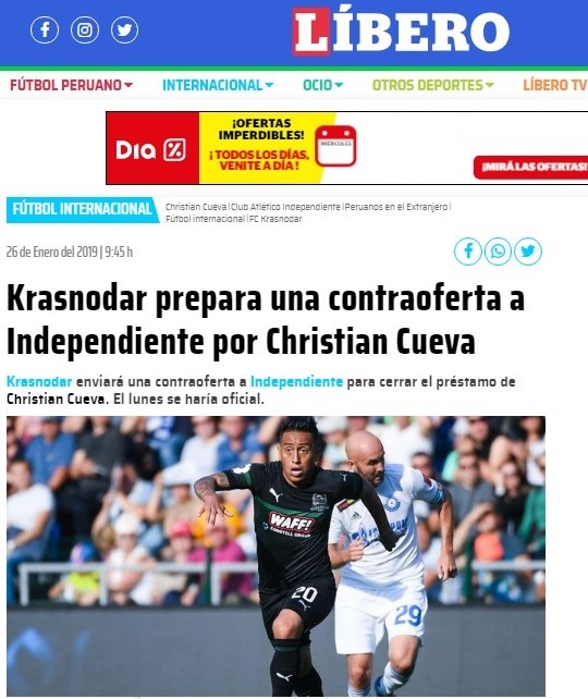 El mercado de pases en el fútbol ruso cerrará el próximo 31 de enero y por eso los caminos conducirían a un posible traspaso al fútbol sudamericano así resalta Líbero.