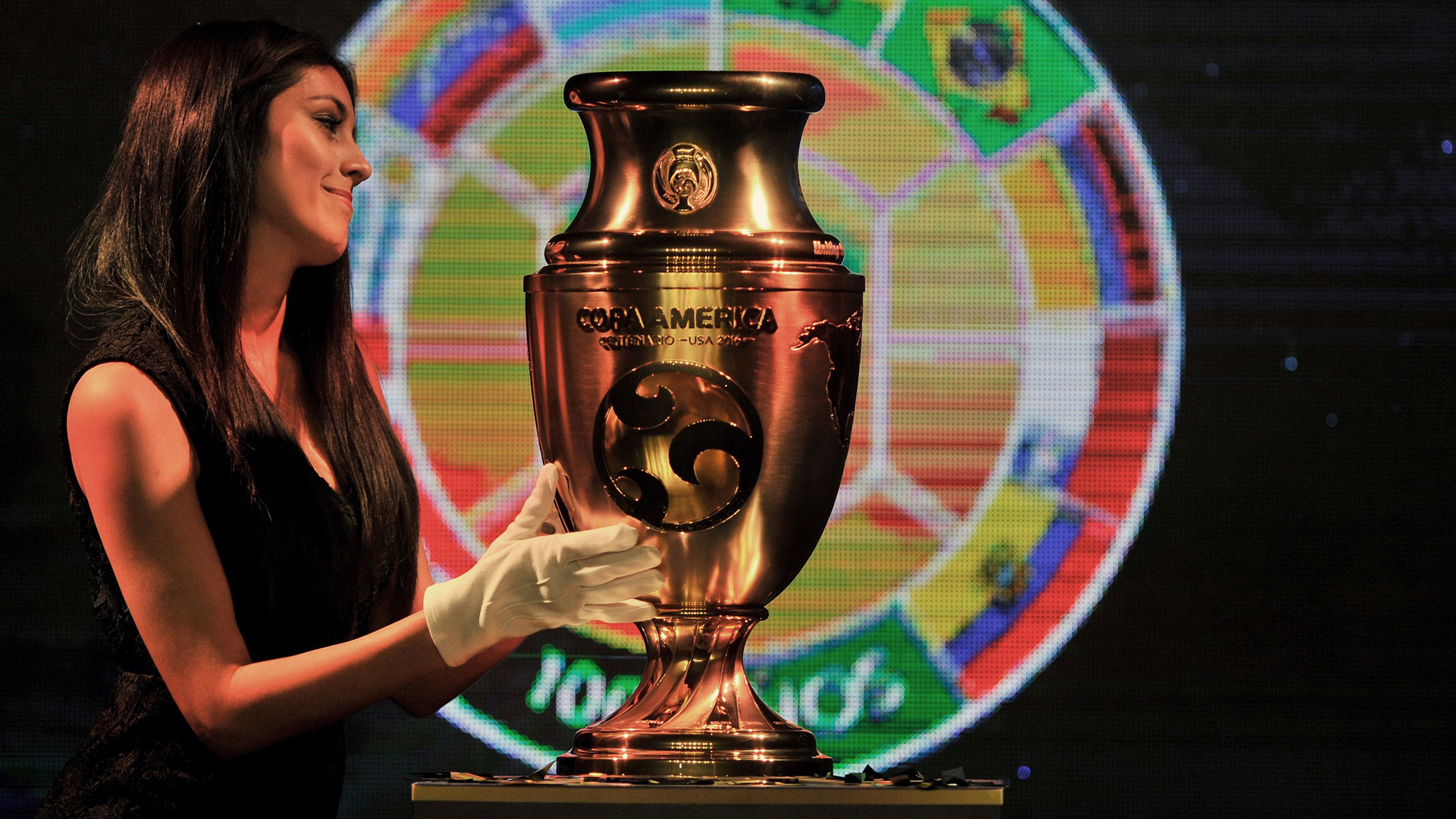 El trofeo de la Copa América Centenario fue presentado este jueves por la noche en Bogotá, en la sede deportiva de la Federación Colombiana de Fútbol, en un acto de la CONMEBOL donde estuvieron presentes todos los técnicos que participarán en el torneo.