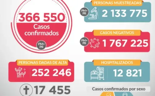 En el nuevo informe, señalaron que de las 2’133,775 personas muestreadas,366,550 casos resultaron positivos. Las muertes, con nuevos datos, llegaron a17 455.