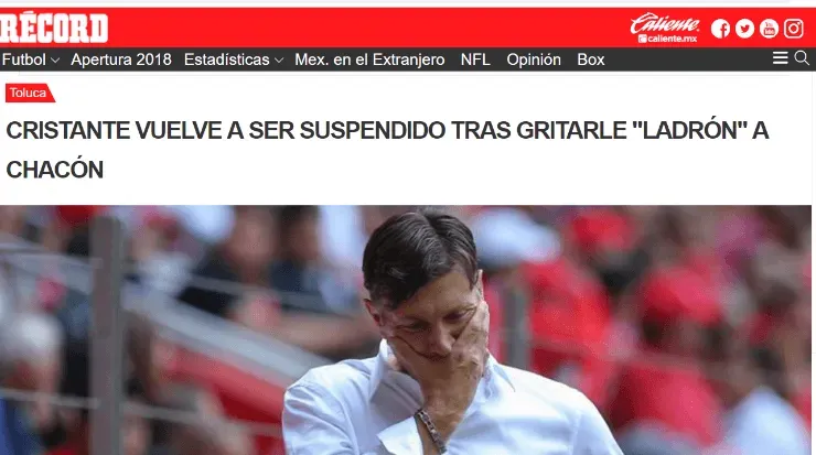 “Rolando Hernán Cristante Mandarino, delToluca, no estará en el siguiente cotejo de los diablos rojos por emplear lenguaje oral o corporal ofensivo, grosero u obsceno y/o gestos de la misma naturaleza” se lee en el documento.