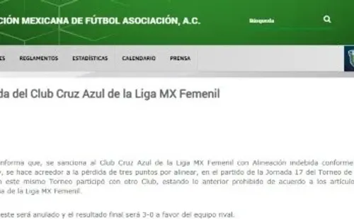 Mercedes Rodríguez, auxiliar técnica del equipo,fue mal incluida en la victoria del Cruz Azul ante losAuriazules.Por ello, la Comisión Disciplinaria les quitó los tres puntos y le otorgaron la victoria a su rival por 3 a 0.