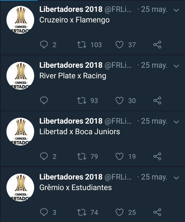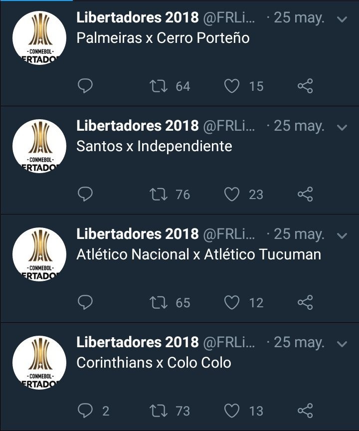 Una cuenta bajo el nombre @FRLibertadores(tuvo que poner en ‘modo privado’ su usuario fruto de la cantidad de mensajes y repercusión que cobró) comenzó a viralizarse ya que el pasado 25 de mayo había publicado de forma previa y anticipada todos y cada uno de los cruces de la siguiente instancia. Las especulaciones, claramente,no tardaron en llegar.