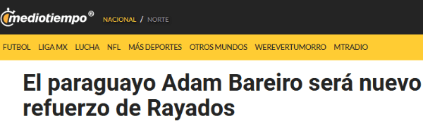 Según el portal Mediotiempo, Los Rayados se aseguraron hoy a Adam Barreiro, provienente de Nacional de Paraguay.