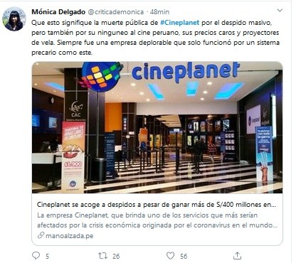Una de las últimas que la ejecutó fue Cineplanet. Si bien su industria se está viendo perjudicada, las ganancias de años anteriores y el grupo económica que la maneja despertaron los cuestionamientos.