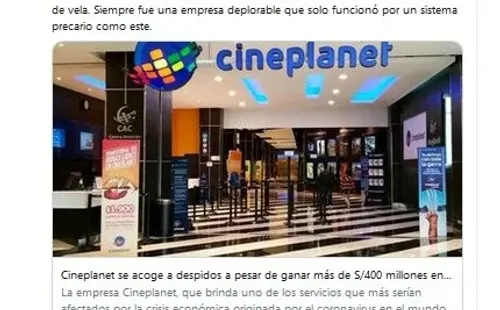 Hay que agregar, además, que antes de esto, Cineplanet había despedido a sus trabajadores, lo que despertó tantas críticas que tuvieron que volver atrás. Igual, demuestra cual es el comportamiento de la empresa. Por eso, muchos aseguran que no volveran a sus salas ¡Fuertes comentarios!