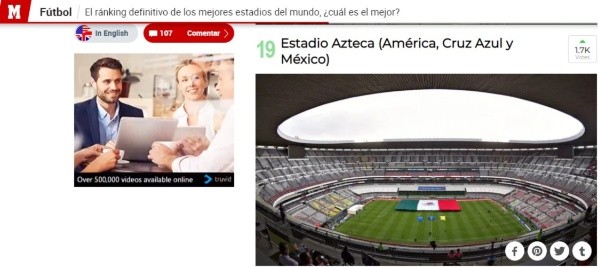 El Azteca es el único estadio mexicano que ingresó entre los 40 mejores elegidos por los usuarios del medio, mediante una votación.